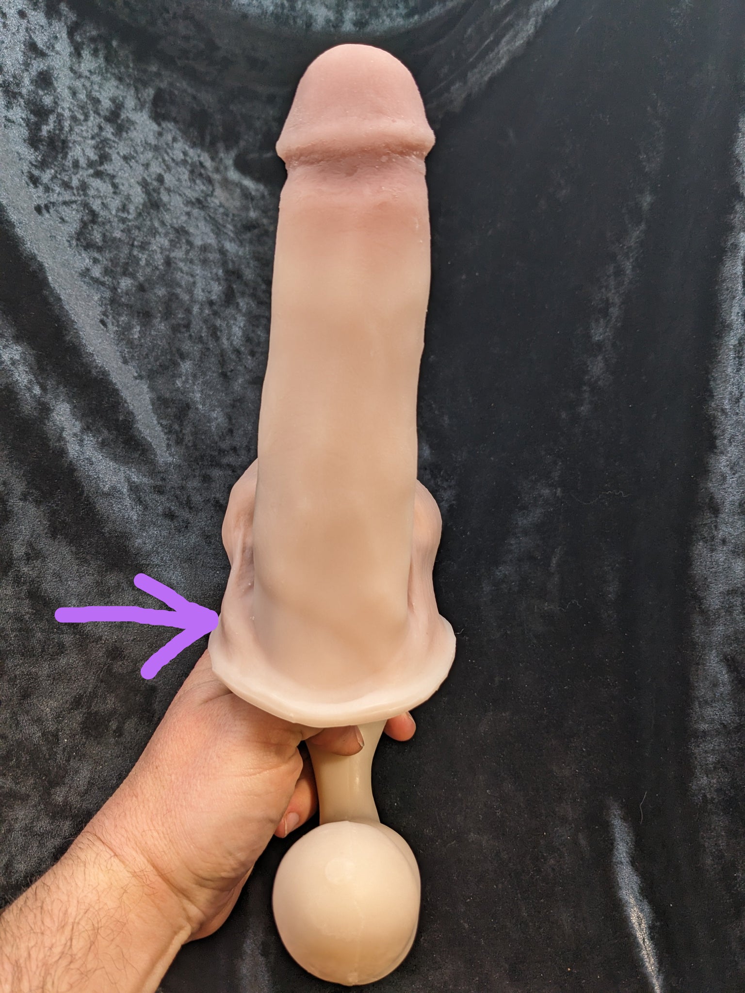 Discounted due to irregular slight shift of tone on base of shaft (see photo 2)